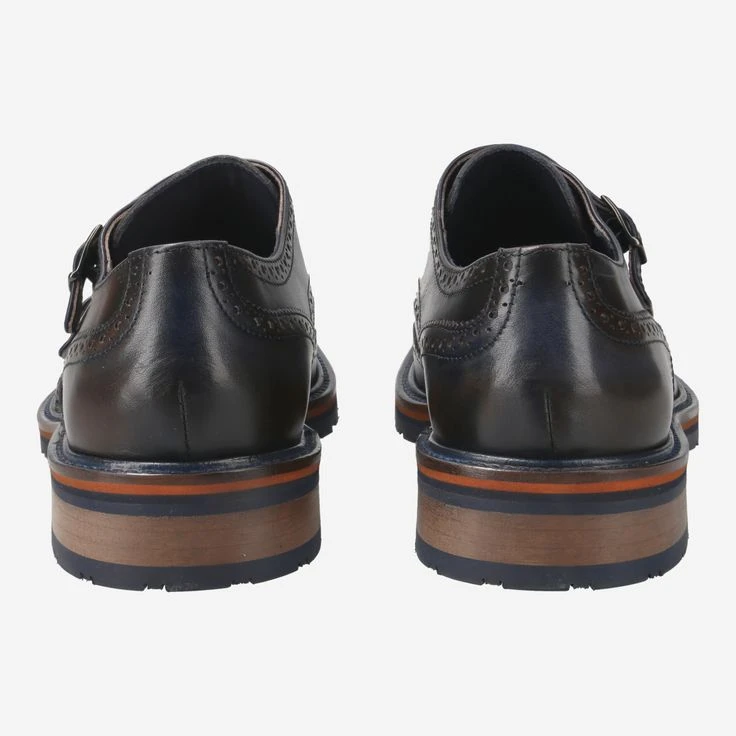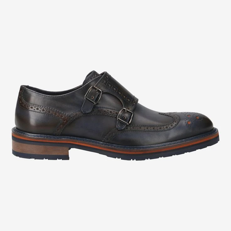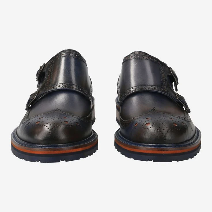 - Metal closure in double monk look, Lyra perforation, Decorative perforation, Elements of a Budapest lace-up shoe, Finish in blue vintage look, Breathable, Stitched-through sole