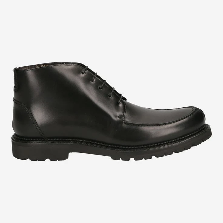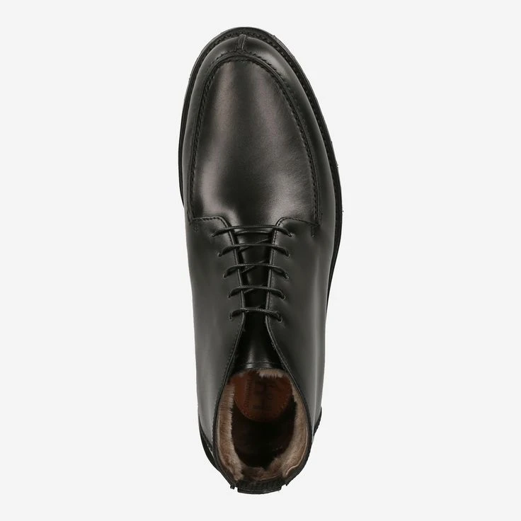 These elegant men’s boots convince not only visually, but also functionally. This model is a shoe that can become an everyday companion in autumn and winter. The warm lining made of lambskin warms the feet pleasantly but regulates the temperature. The sturdy tread sole supports both a secure grip and for more distance from the cold ground. Included are an extra pair of laces and a small shoehorn.