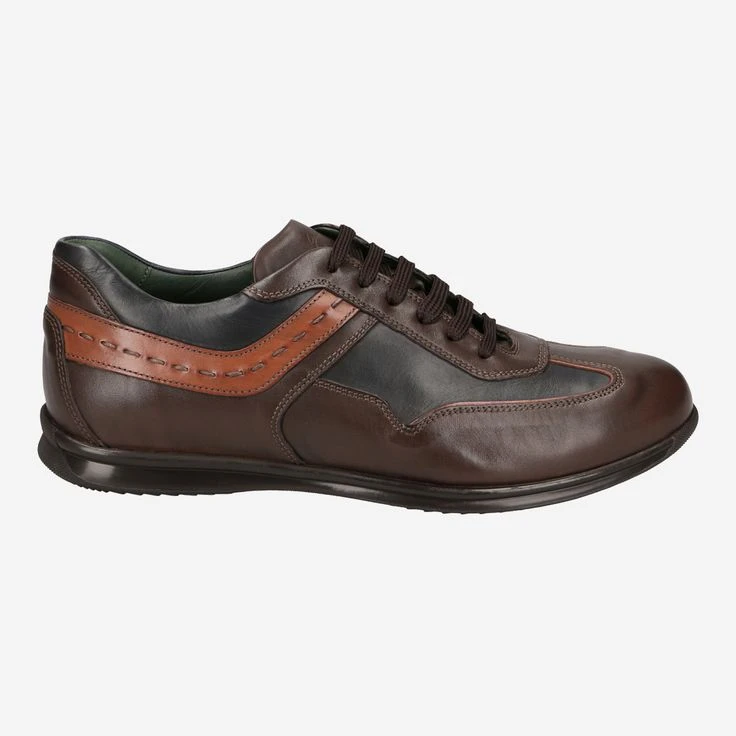 This lace-up from Galizio Torresi convinces at first sight with its stylish design, characterized by a harmonious combination of clean lines and organic styling. With its color mix of different shades of brown, it unfolds a visual power that is carried by elegance and style. The fine decorative stitching lends an interesting liveliness to this. To ensure that the shoe fits perfectly, it is equipped with a removable leather cover sole. The extra-wide shape also leaves room for wider feet.