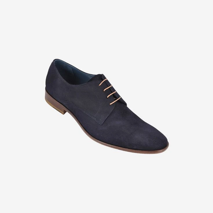 Dark blue men`s lace-up shoes from John Brommel`s. The shoe is made of high quality leather. Its lining, insole and outsole are also made of leather and rubber respectively.