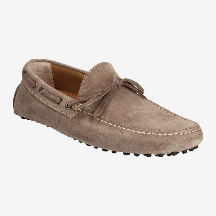 The new boat shoes (sailing shoes) from Lüke impress with high-quality suede, which ensures air permeability, breathability and continuous comfort. The leather lace, which loops around the heel through the eyelets and ends in a bow on the tongue, is the visual highlight of this model. The friendly, light beige coloration goes particularly well with summer and creates a strikingly light image. Perfect outfit for the summer!